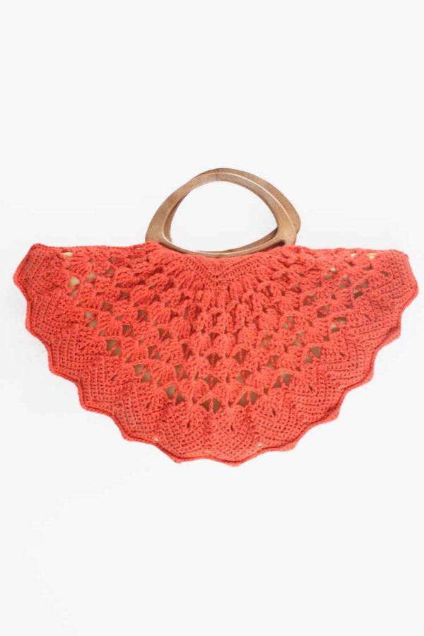 1940s Orange Knitted Half Moon Handbag with Wooden Handle