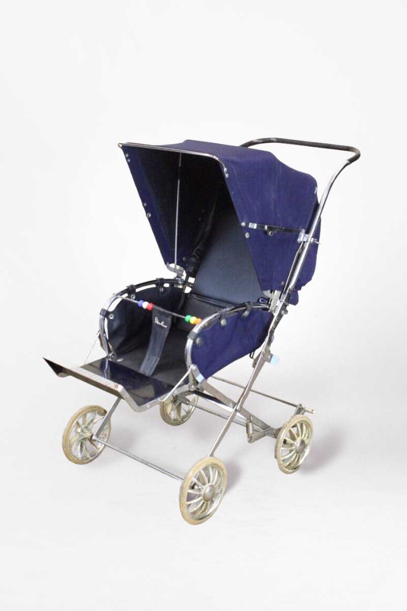 1970s – 1980s Navy Silver Cross Pushchair with Canopy and Beads (H88.50xW85xD46 (cm))