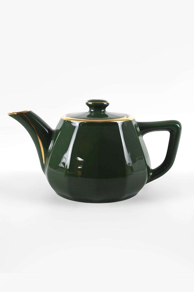 Apilco Bistro Green with Gold Rim Teapot