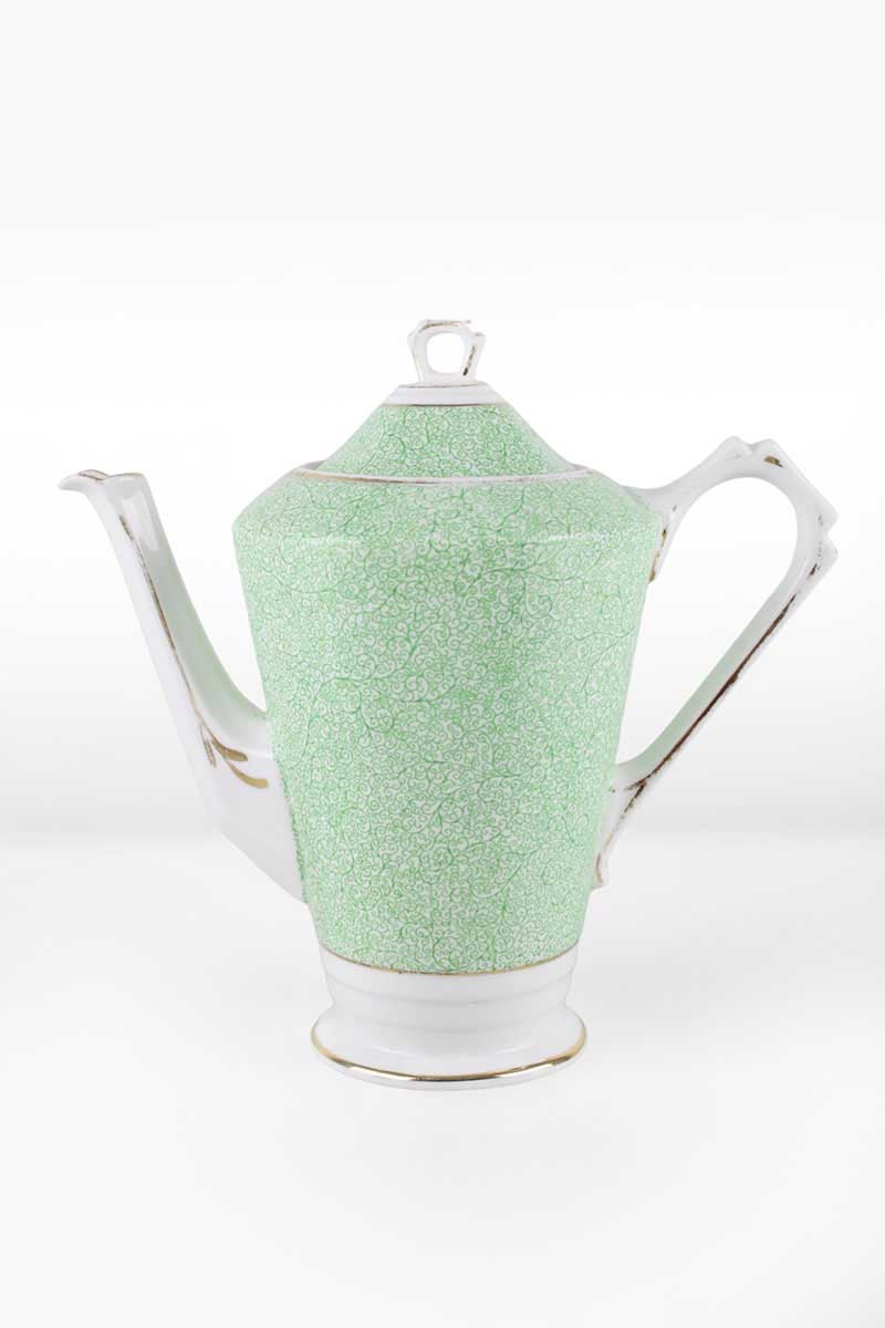 Art Deco Mottled Green and White Coffee Pot