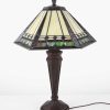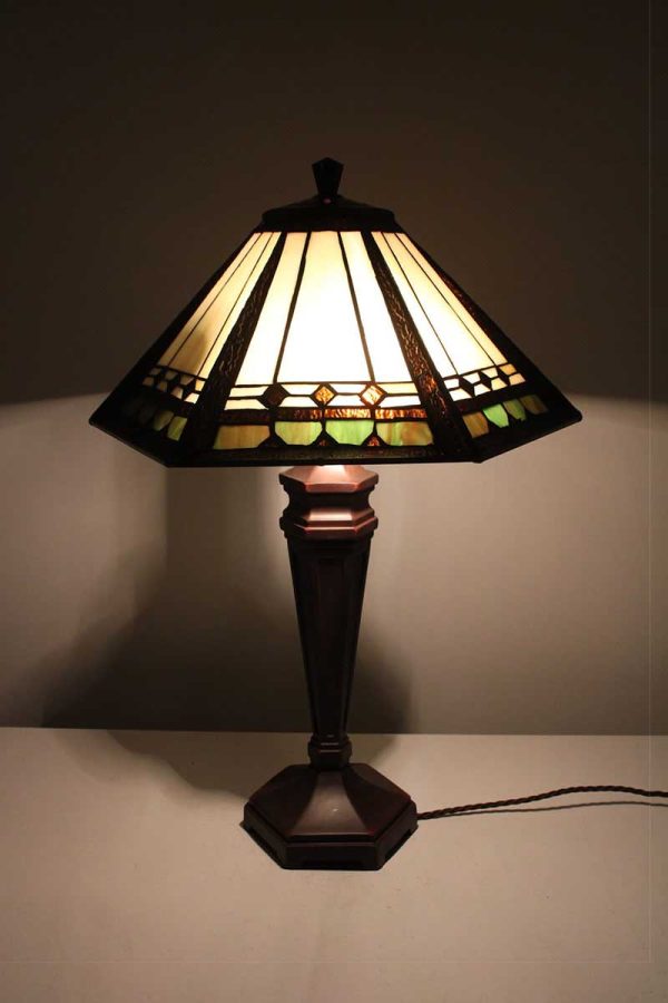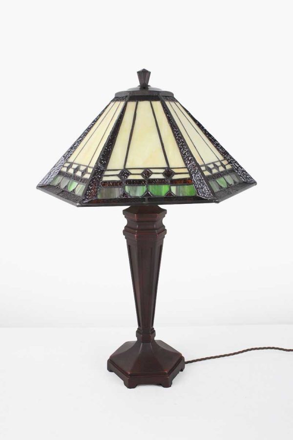 Art Deco Style Tiffany Table Lamp with Hexagonal Glass Shade