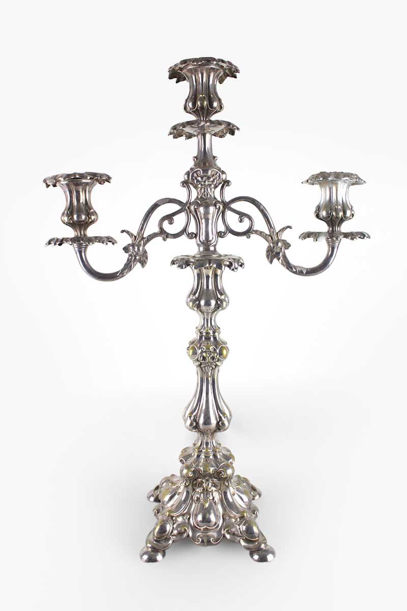 Baroque Silver 3 Branch Candelabra Top Embossed Lobed Decoration