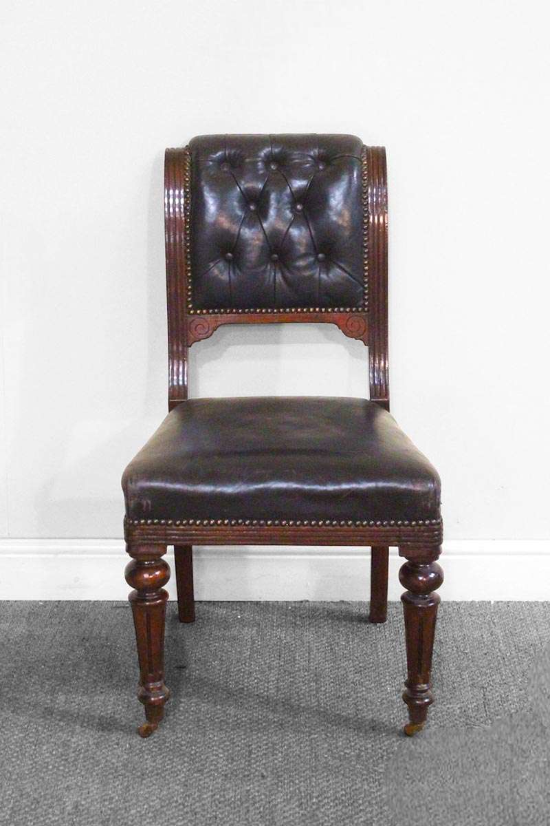 Black Leather Upholstered Chair with Button Back and Front Castor