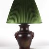 Bronzed Classical Urn Lamp with Dark Green Silk Pleated Shade quantity