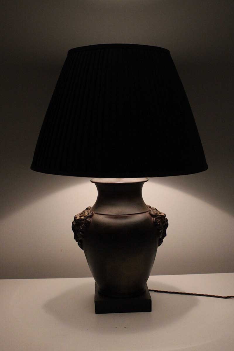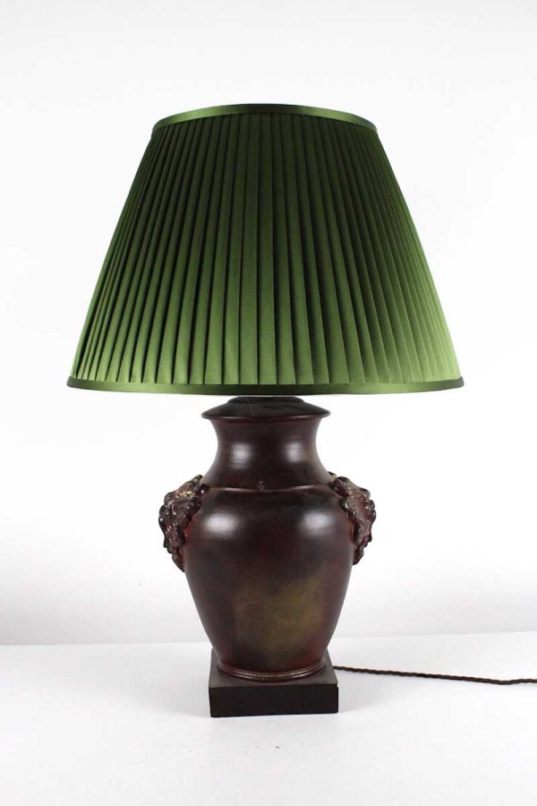 Bronzed Classical Urn Lamp with Dark Green Silk Pleated Shade