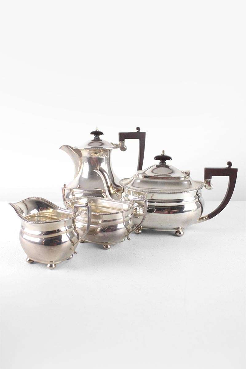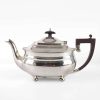 Bulbous Plain Silver Tea Pot with Bead Edge and Angular Wooden Handle