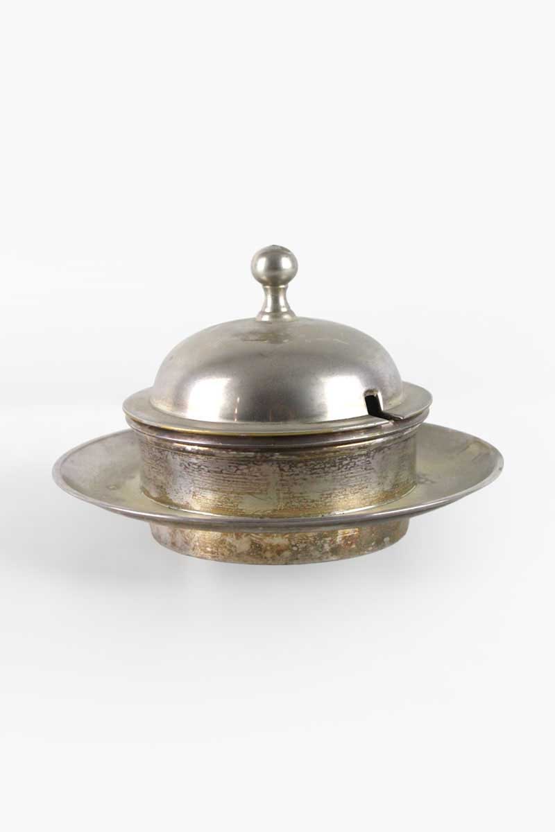 Circular Plain Silver Butter Dish with Dome Lid & Pierced Silver Liner quantity