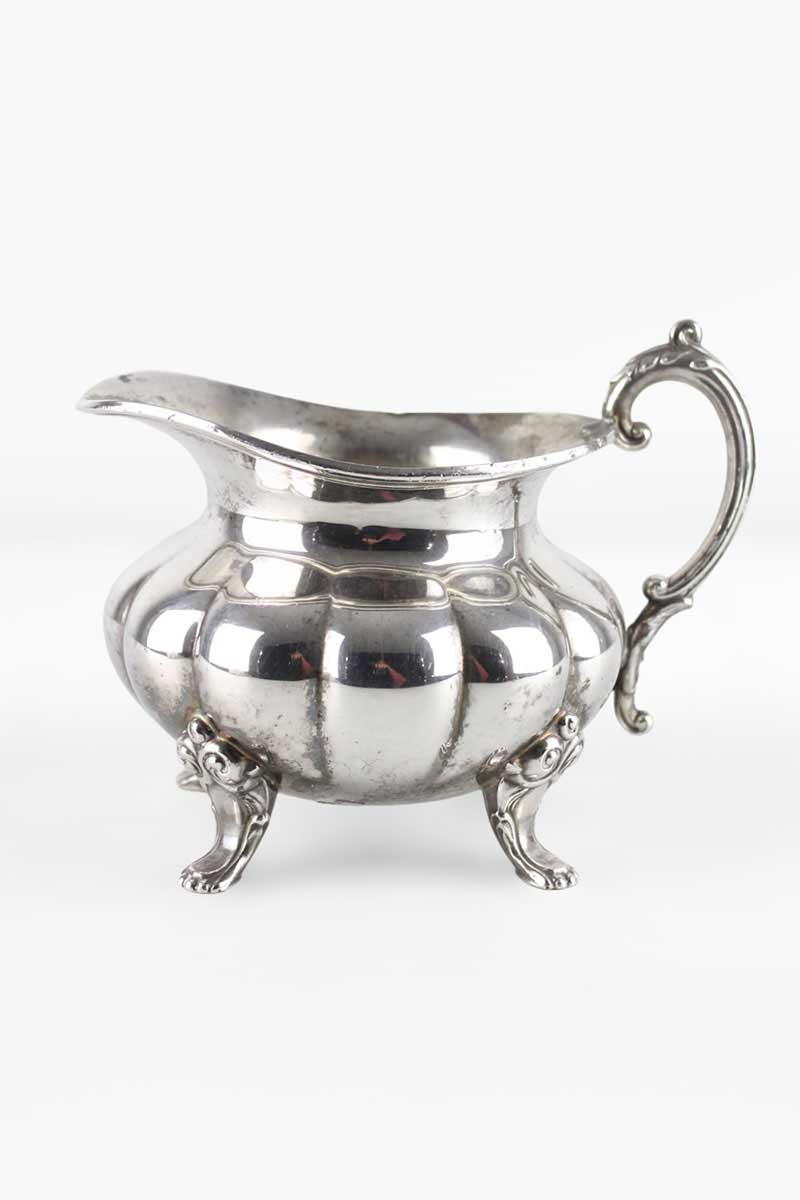 Circular Pumpkin Style Silver Milk Jug on 4 Feet
