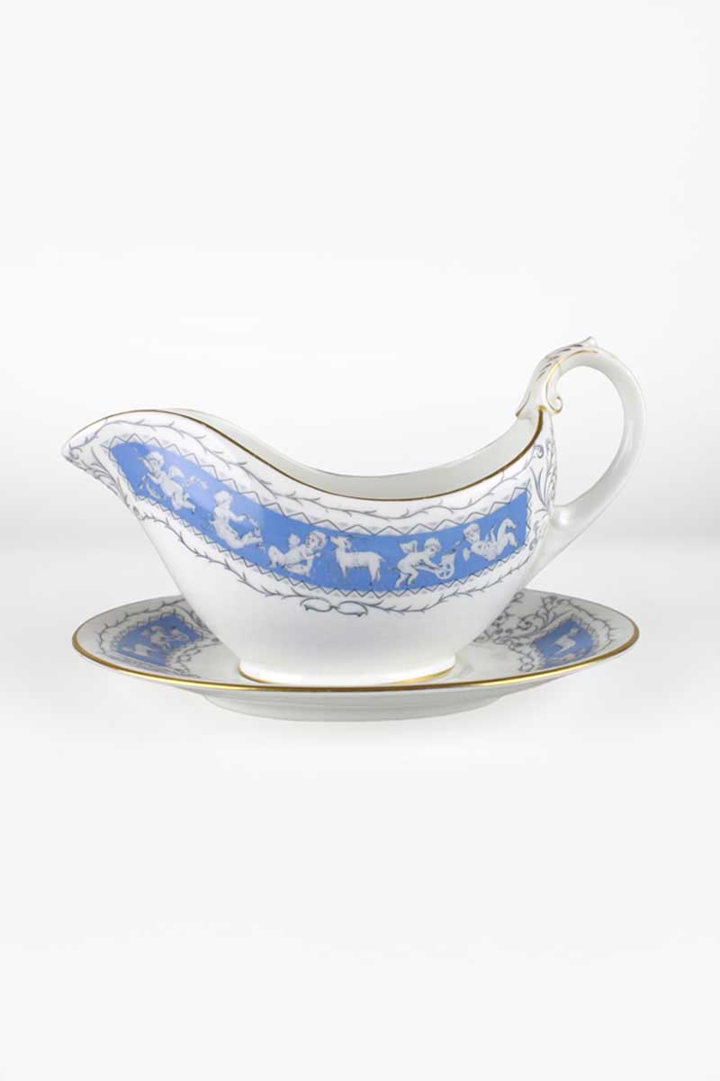 Coalport Revelry Gravy Boat and Saucer with Pale Blue & White Cherub Decoration