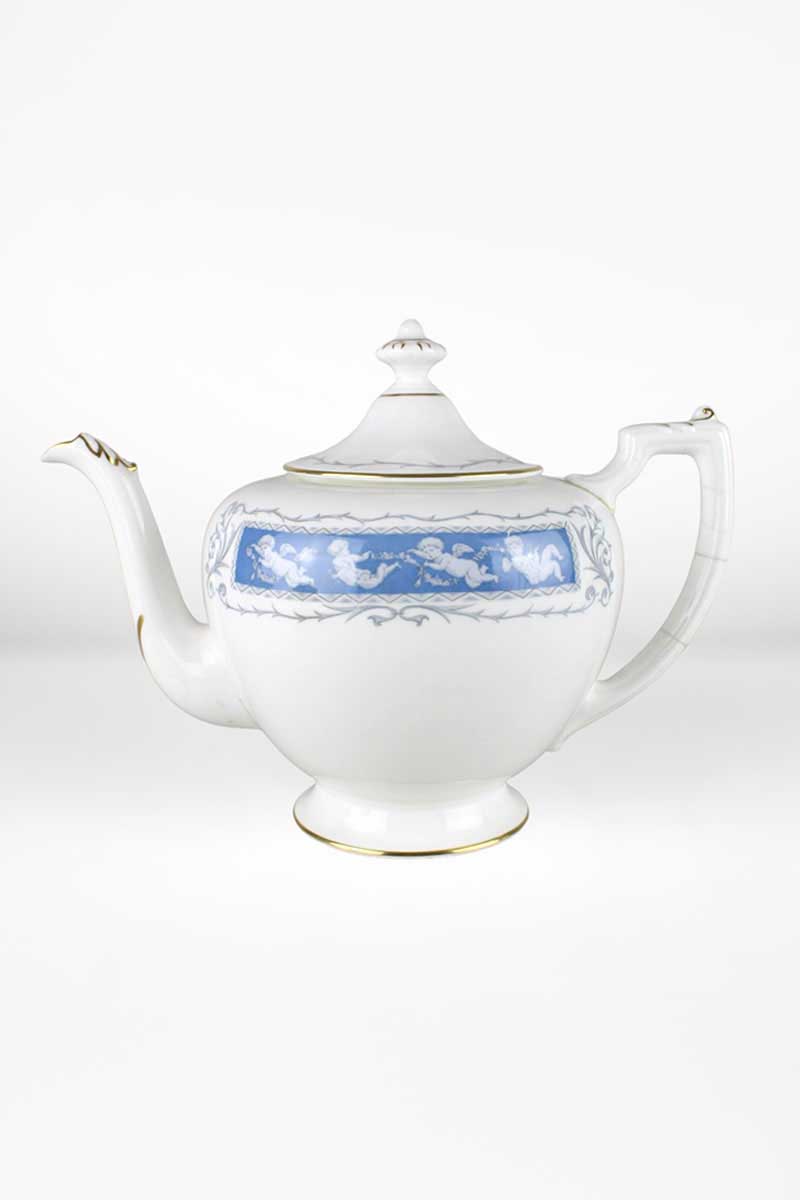 Coalport Revelry Large Teapot with Pale Blue & White Cherub Decoration