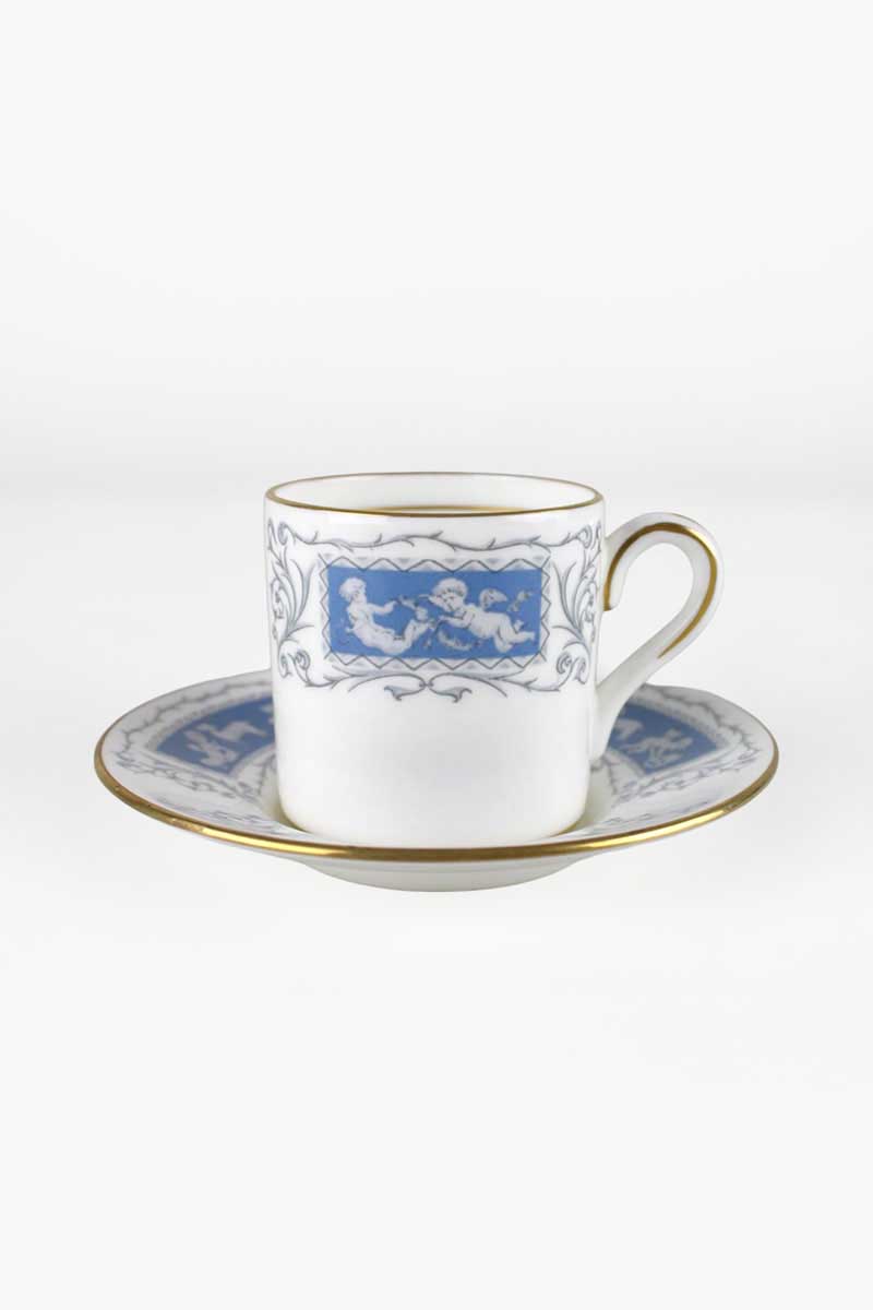 Coalport Revelry Small Coffee Cup Saucer with Pale Blue Cherub Decoration