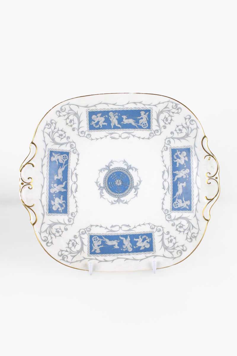 Coalport Revelry Square Bread / Cake Plate with Pale Blue & White Cherub Decoration