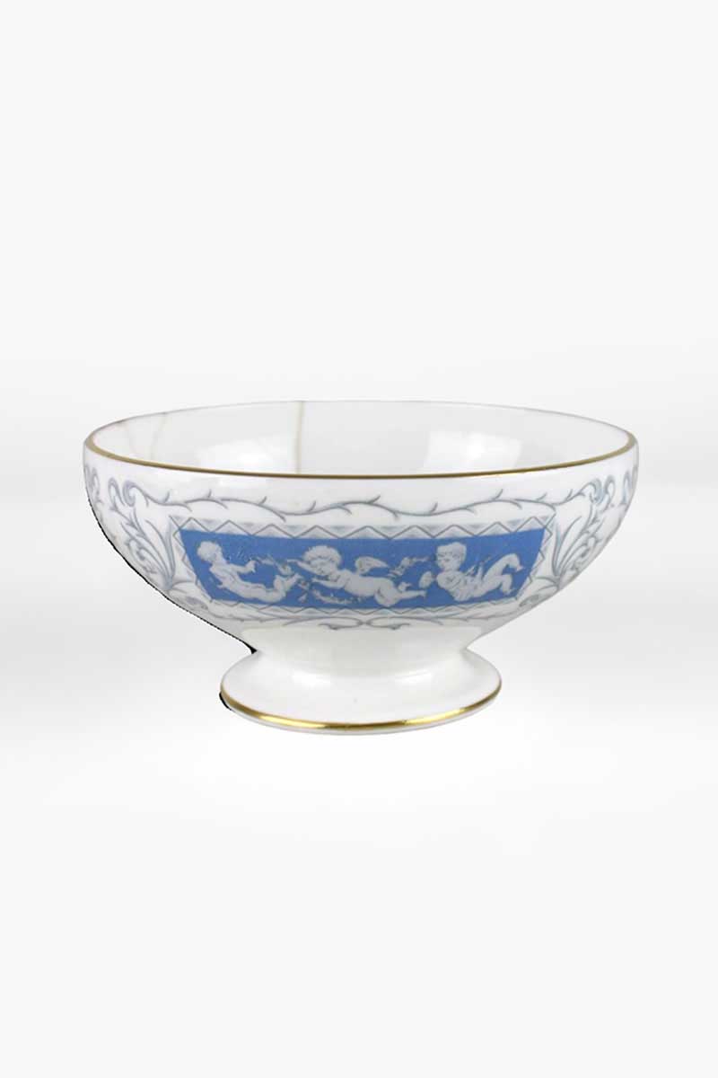 Coalport Revelry Sugar Bowl with Pale Blue & White Cherub Decoration on Pedestal Foot