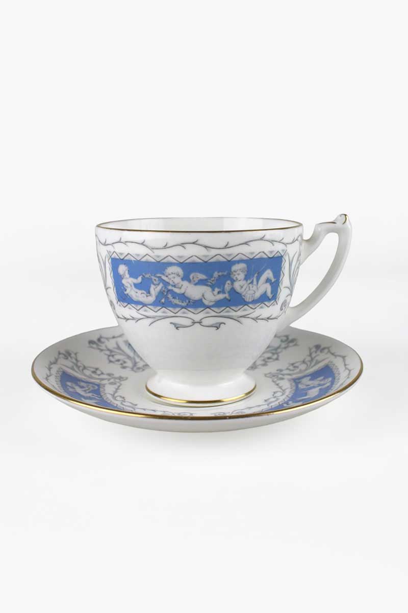 Coalport Revelry Tea Cup with Pale Blue & White Cherub Decoration