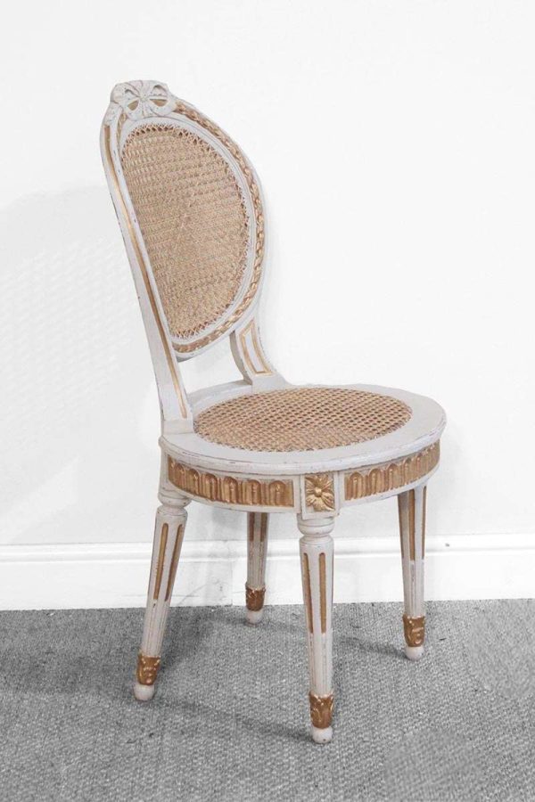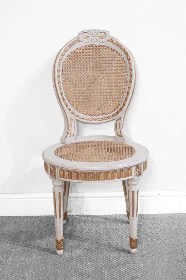 Continental Beige Painted Salon Chair with Gilt Embellishments and Oval Cane Seat and Back quantity
