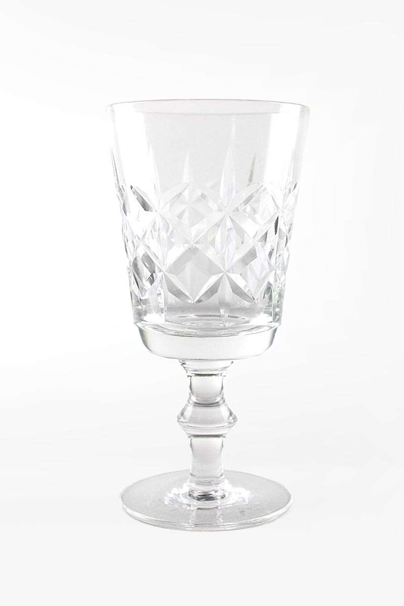 Cut Glass Straight Sided Red Wine Goblet with Small Knop Stem and Star Pattern quantity
