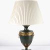 Dark Green Metal Regency Style Urn Table Lamp with Gilt Decoration and Cream Pleated Shade quantity