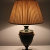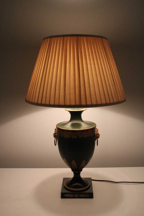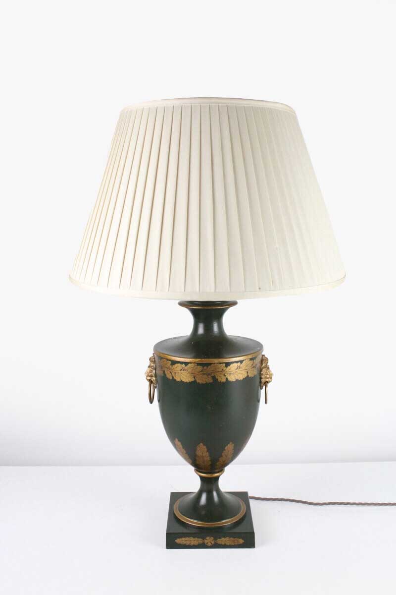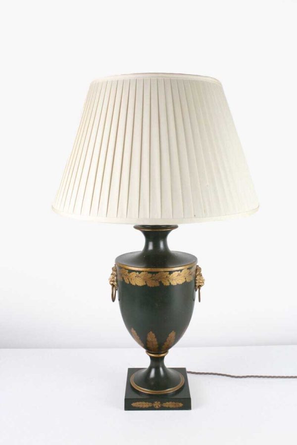Dark Green Metal Regency Style Urn Table Lamp with Gilt Decoration and Cream Pleated Shade