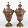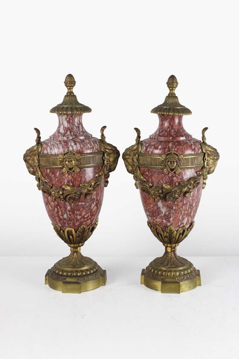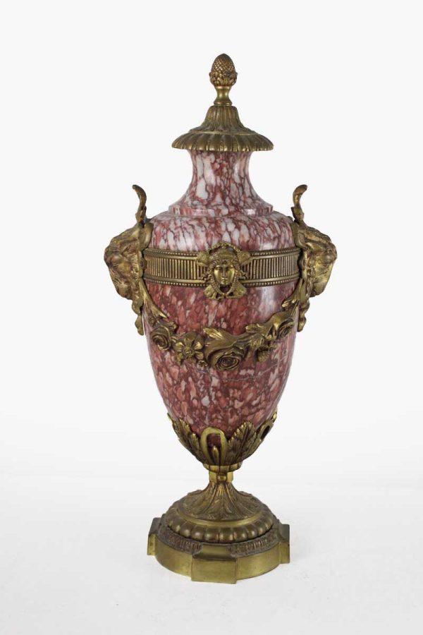 Dark Red Marbled Lidded Urn with Bronze Garlands and Frieze quantity