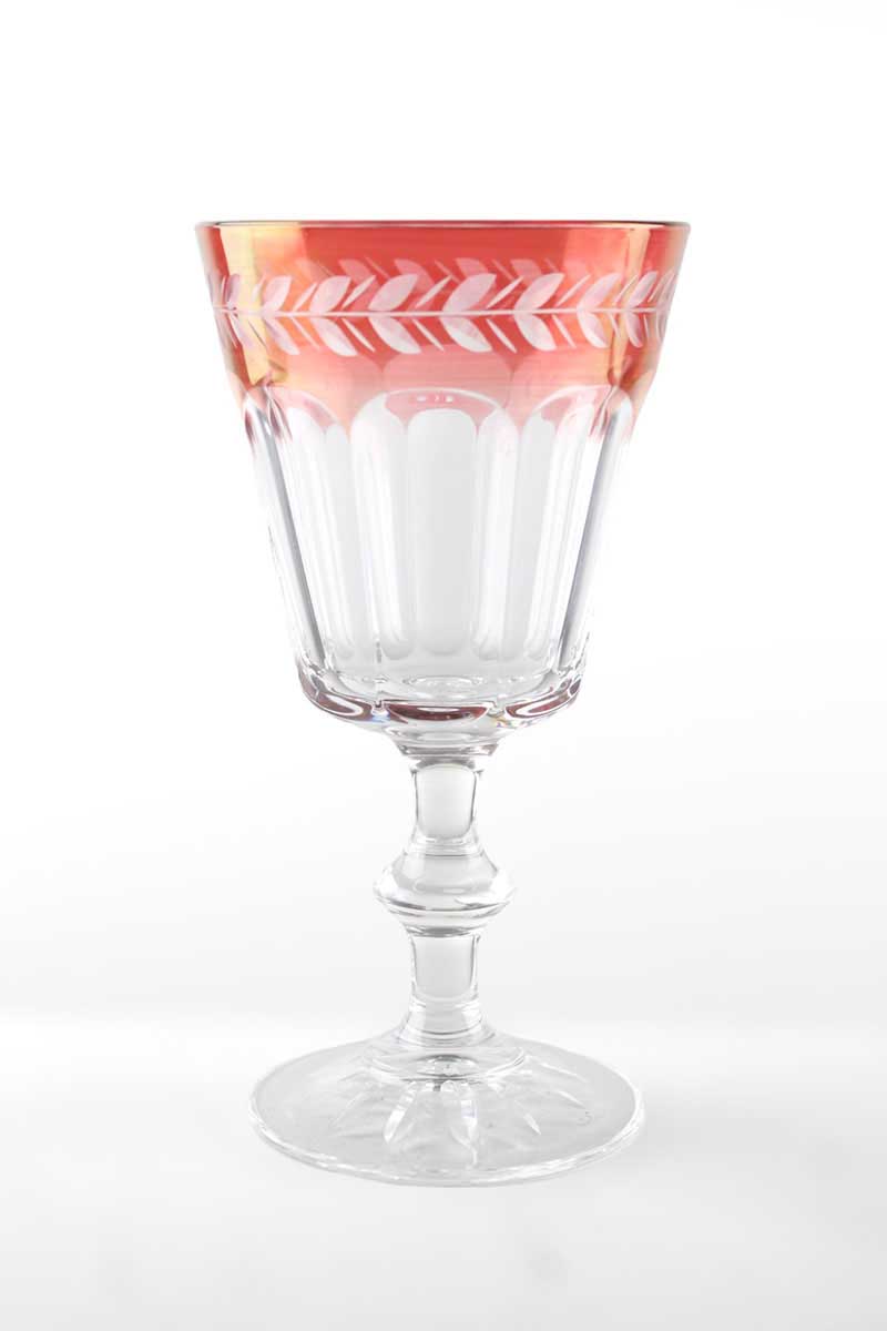 Engraved Laurel Leaf Ruby Top White Wine Glass