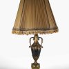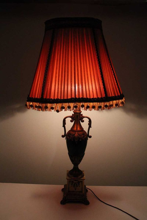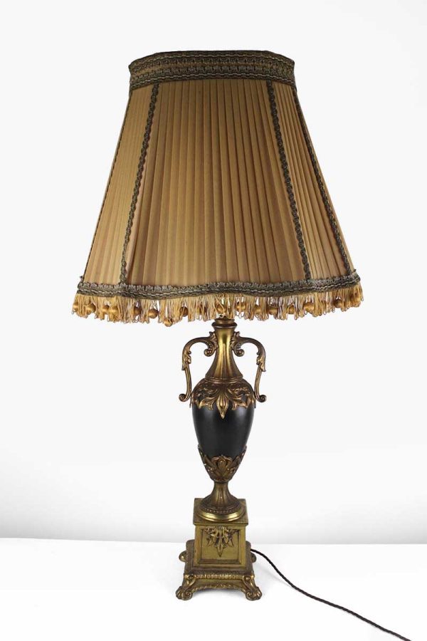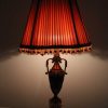 Extra Large Black and Copper Urn Style Table Lamp with Large Oblong Chiffon Shades with Braid and Tassel Decoration quantity