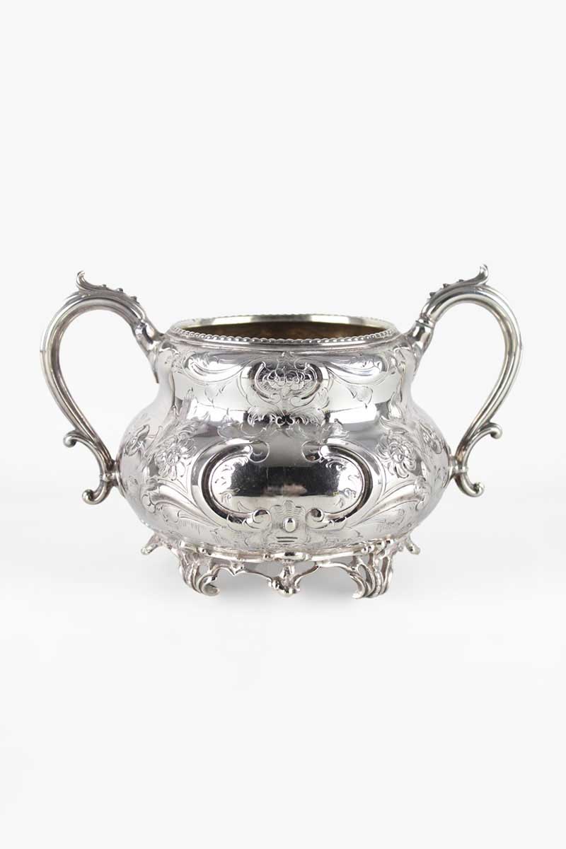 Fine Silver Sugar Bowl Beautifully Embossed with Scrolls & Flowers 2 Handle