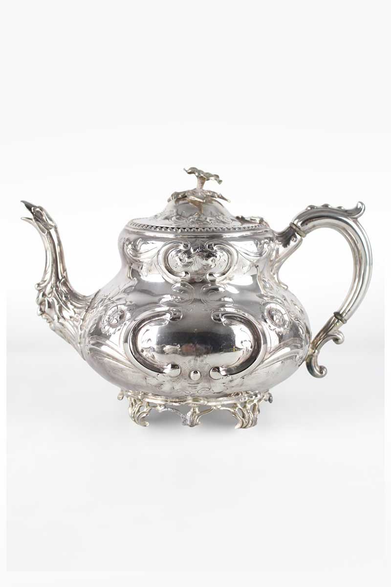 Fine Silver Teapot Beautifully Embossed with Scrolls & Flowers & Flower Finial