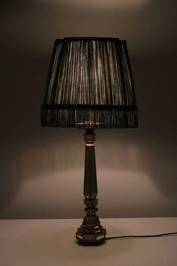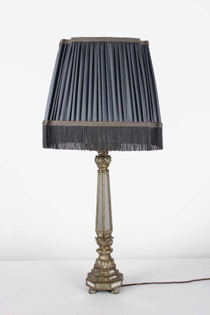 Gilt Metal and Mirrored Glass Table Lamp with Grey Blue Fluted Pleat Shade quantity