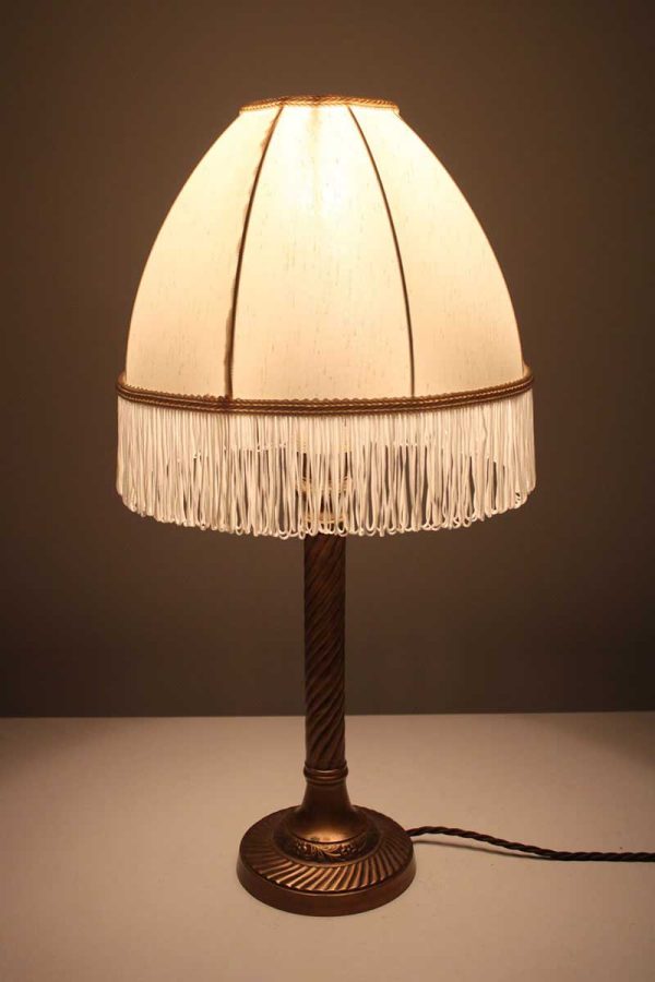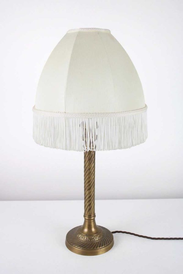Gilt Twist Candlestick Style Table Lamp with Cream Domed Shade and Fringe quantity