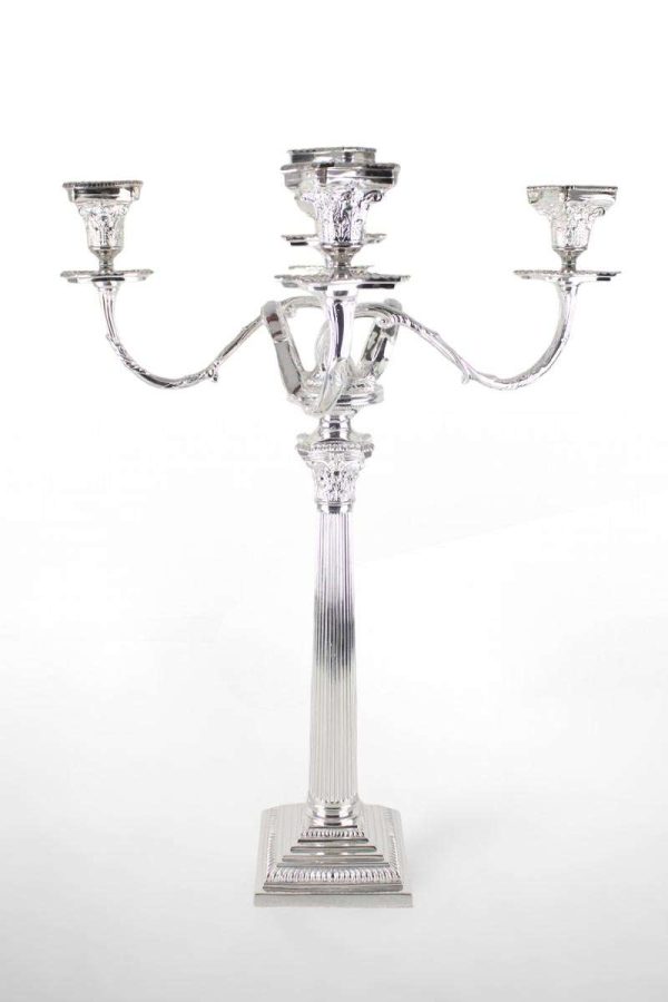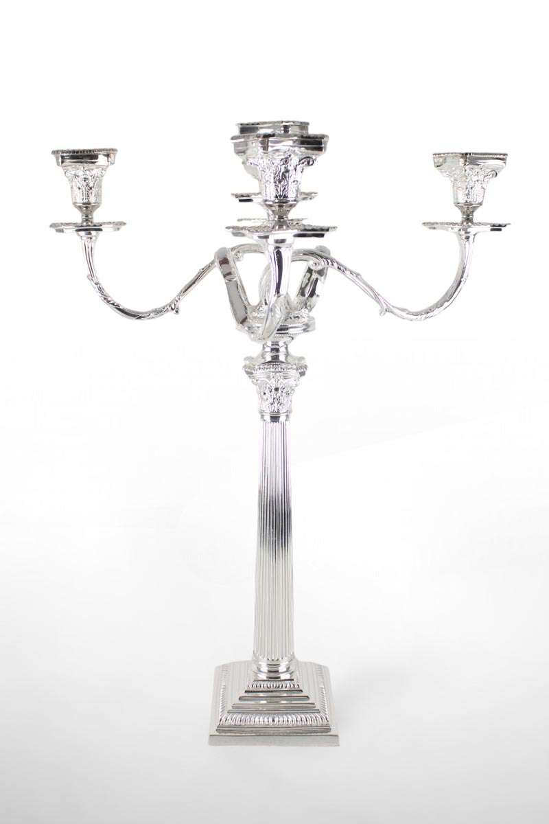 Large Corinthian Candlestick with Sconces with Square Stepped Base