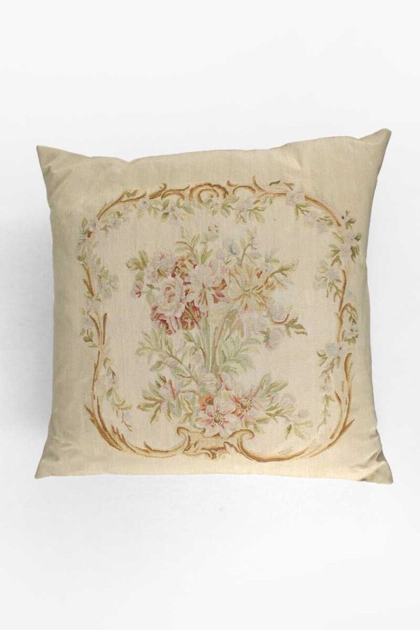 Large Cream Square Silk Cushion with Central Embroidered Floral Panel