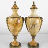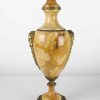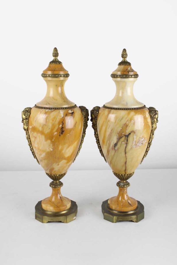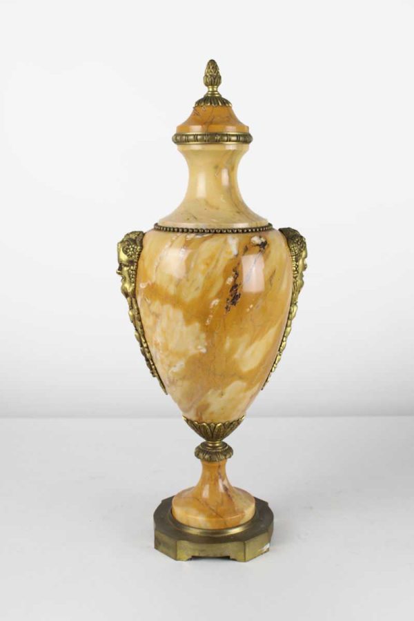 Large Dark Yellow Marble Lidded Urn with Bronze Satyr Faces