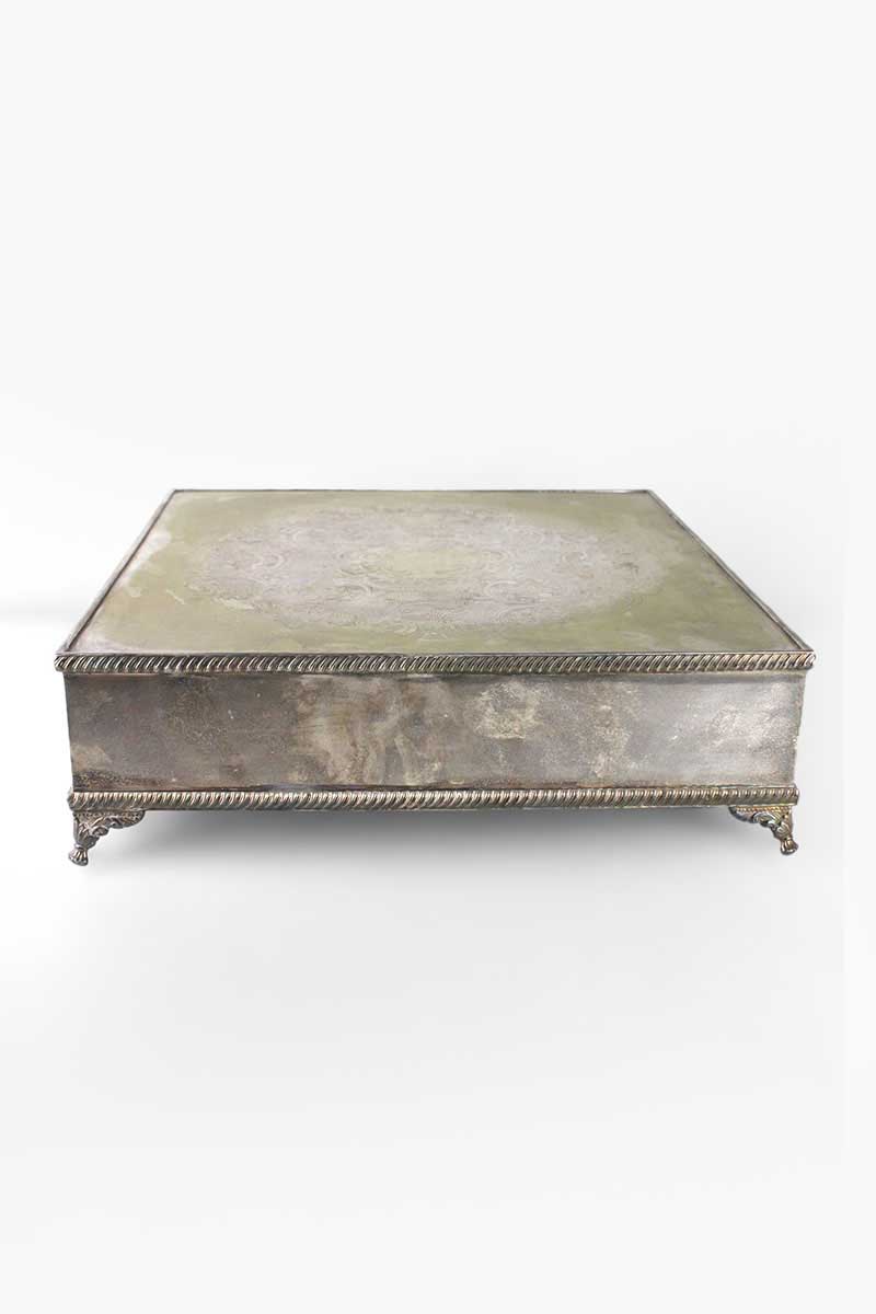 Large Square Engraved Silver Stand with Gadroon Rim on 4 Feet