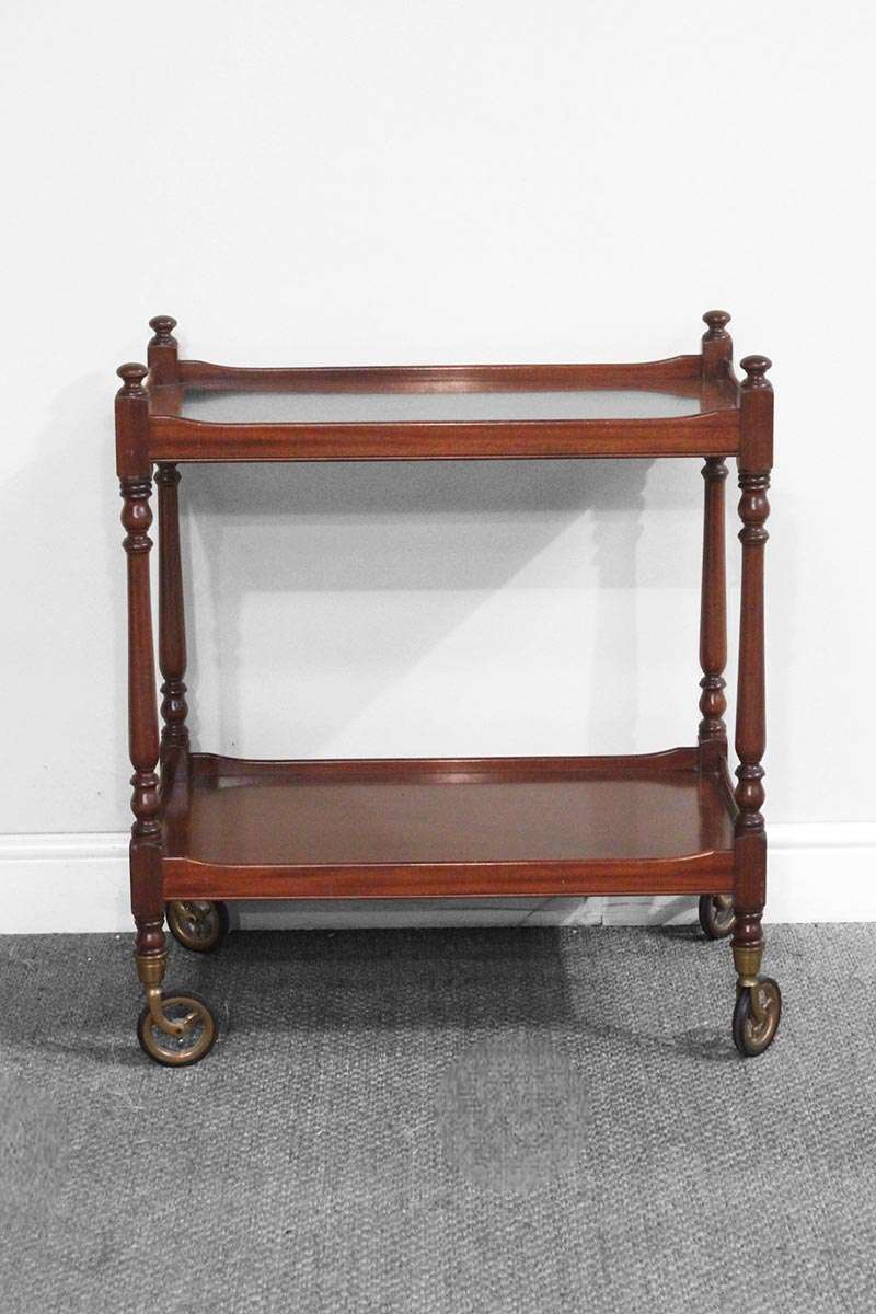 Mahogany 2 Tier Drinks Trolley / Buffet with Turned Legs on Wheels