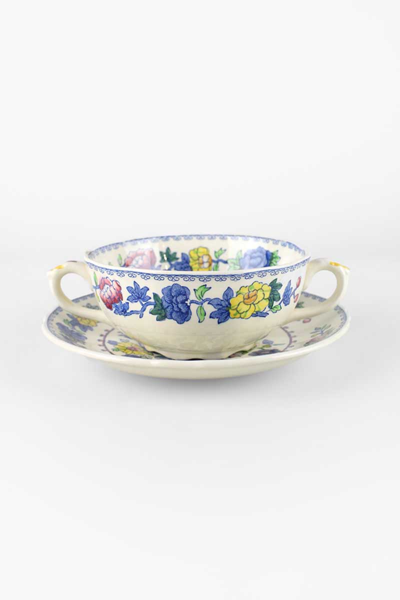 Mason's Regency Blue Floral Soup Cup / Bowl with 2 Handles quantity