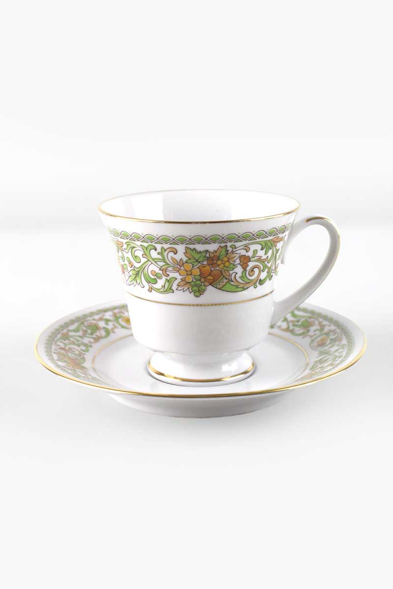 Noritake Theresa Tea Saucer with Decorative Band In Green and Terracotta quantity