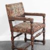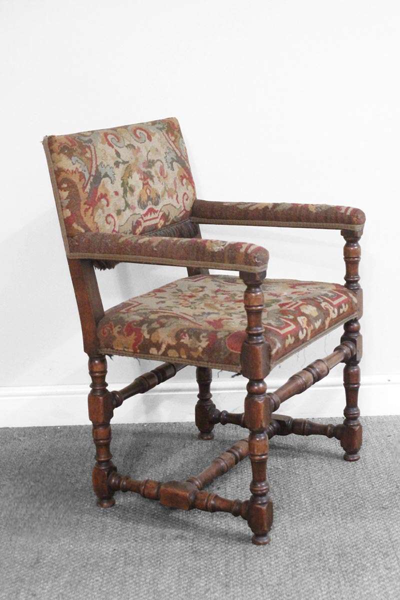 Oak Turned Armchair with Red Patterned Tapestry Upholstery quantity