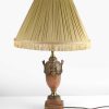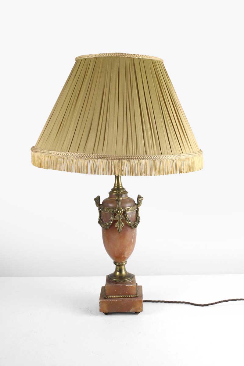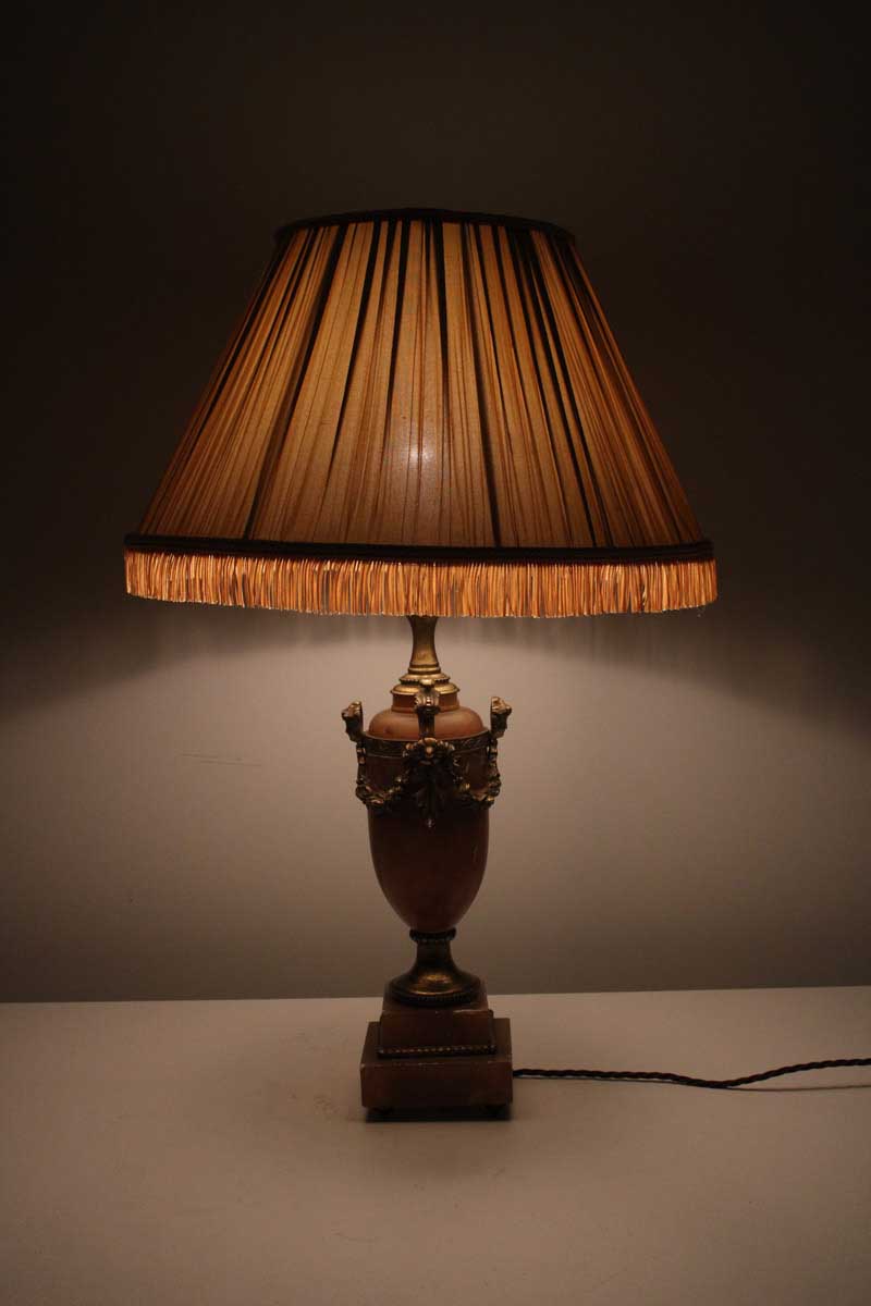 Orange Marble Urn Shaped Lamp with Ormolu Mounts and Gold Pleated Shade