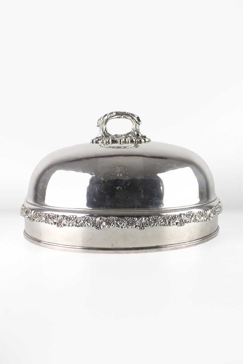 Oval Silver Meat Cover with Moulded Floral Band & Twisted Oak Branch Handle quantity