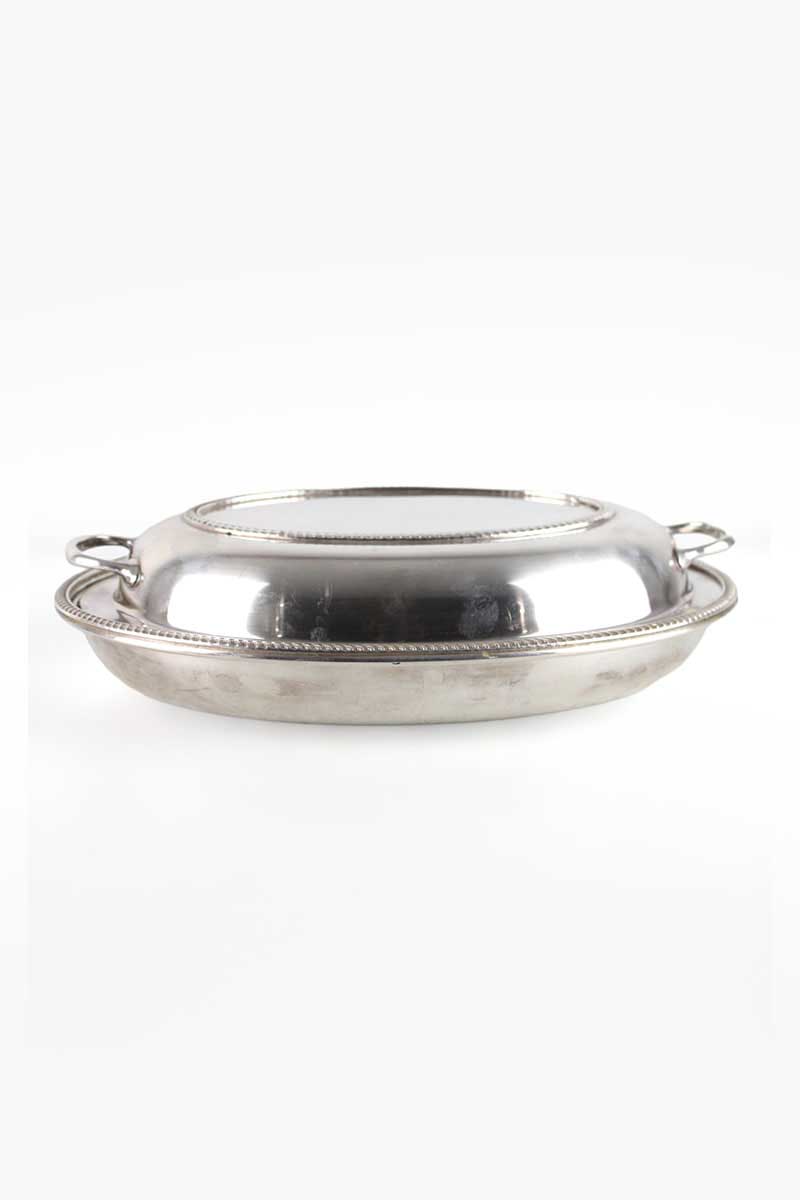 Oval Silver Serving Dish with Gadroon Rim & Lid with 2 attached Handles