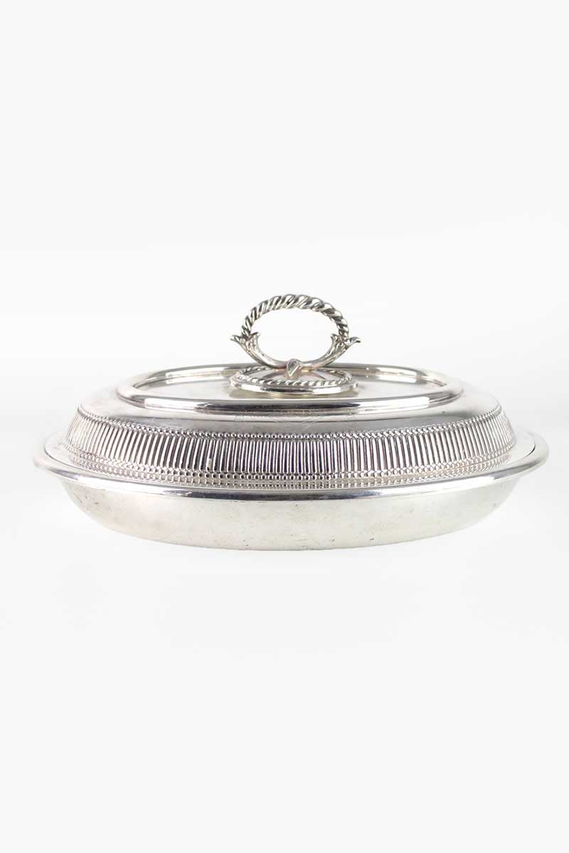 Oval Silver Serving Dish with Reeded & Bead Lid & Rope Twist Handle