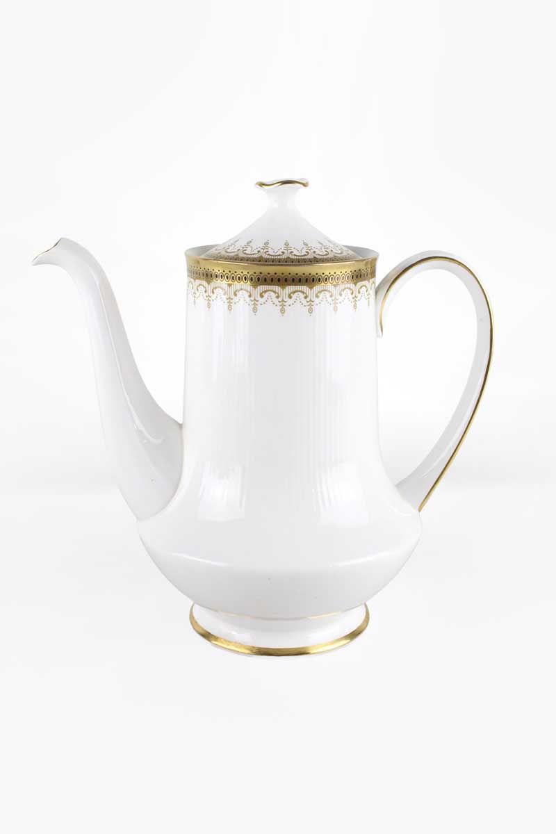 Paragon Athena Coffee Pot White with Intricate Gilt Rim