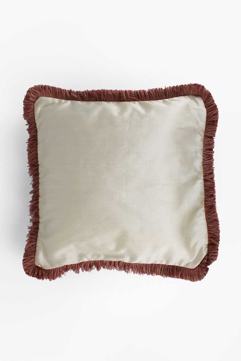 Plain Cream Silk Cushion with Rust Brush Fringe Edge