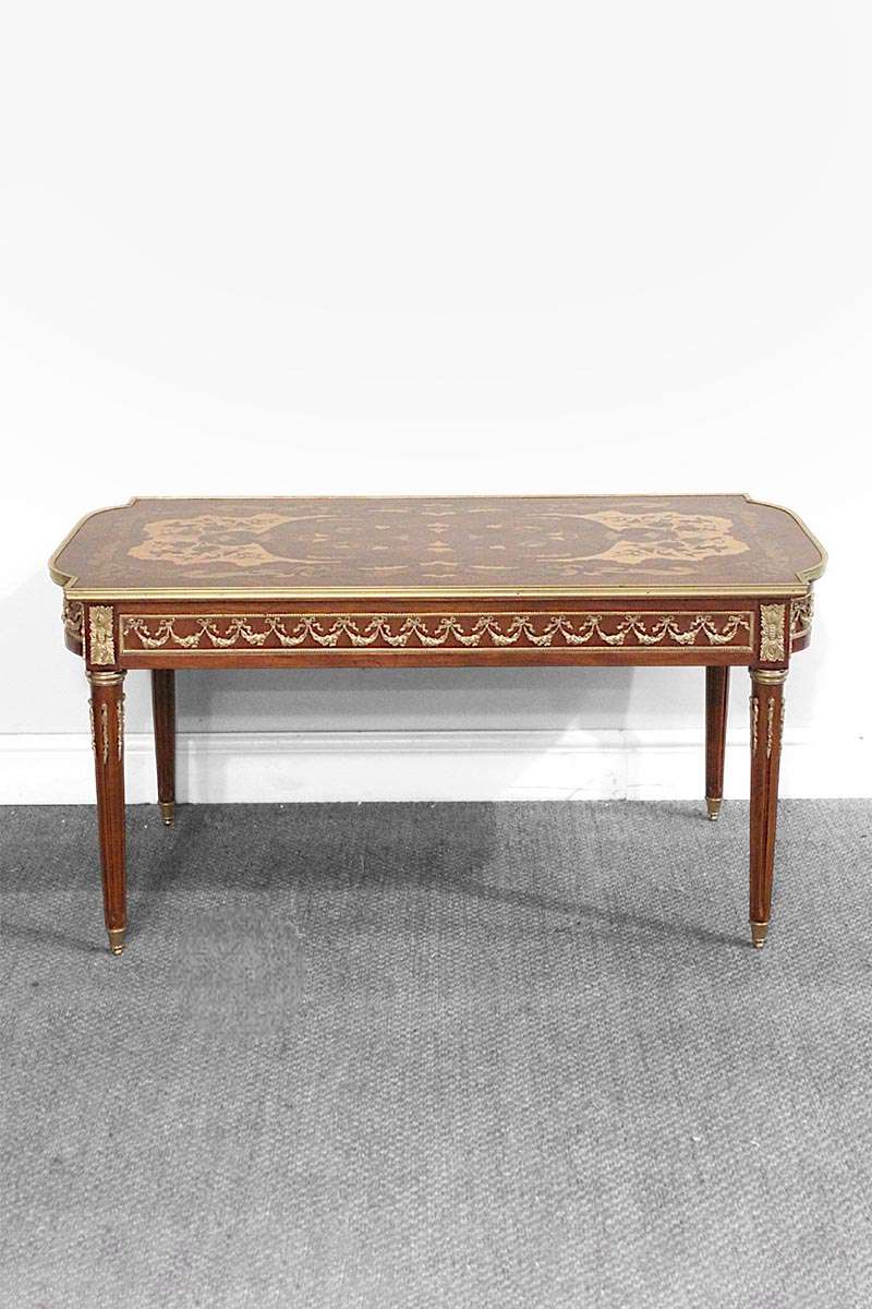 Rectangular Shaped Marquetry Coffee Table with Floral Designs Brass Edging & Garlands
