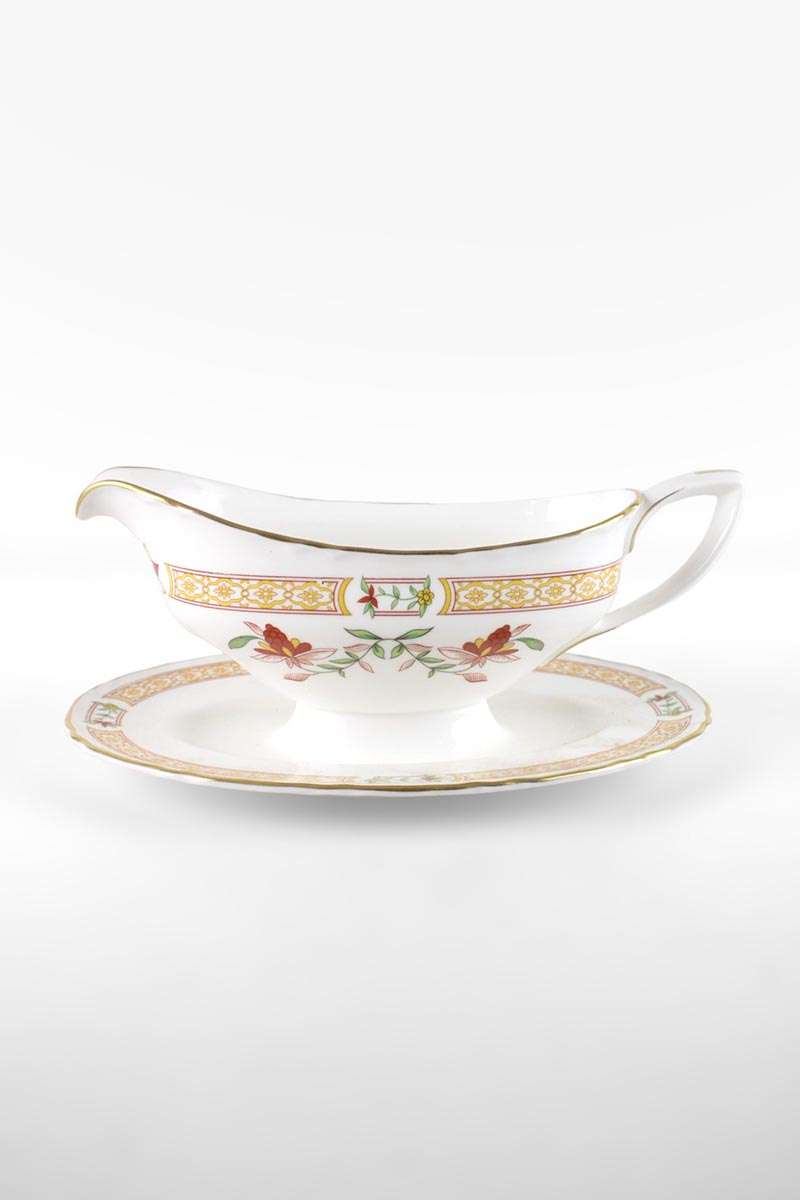 Royal Worcester Chamberlain Regency Style Gravy Boat with Fixed Saucer with Orange Floral Motif