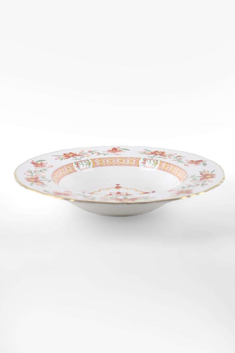 Royal Worcester Chamberlain Regency Style Soup / Dessert Bowl with Rim with Orange Floral Motif
