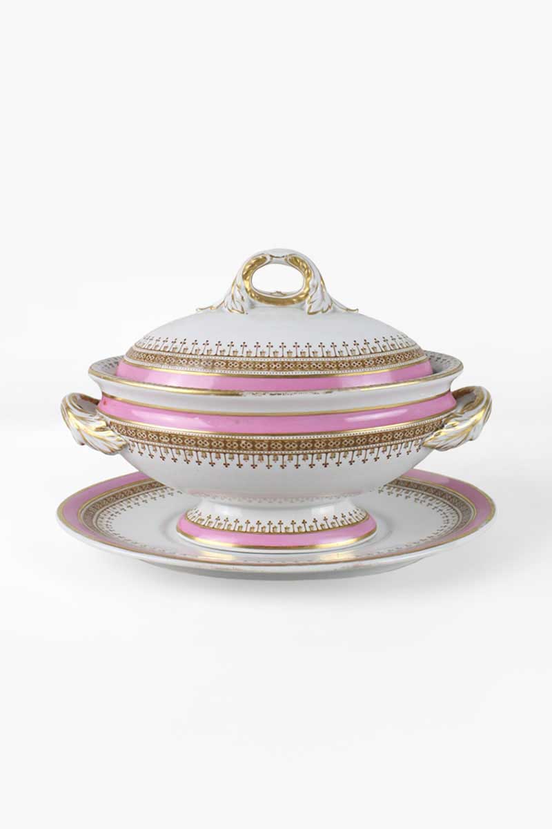 Royal Worcester Pink & Gold Rimmed Oval Sauce Tureen with Lid quantity