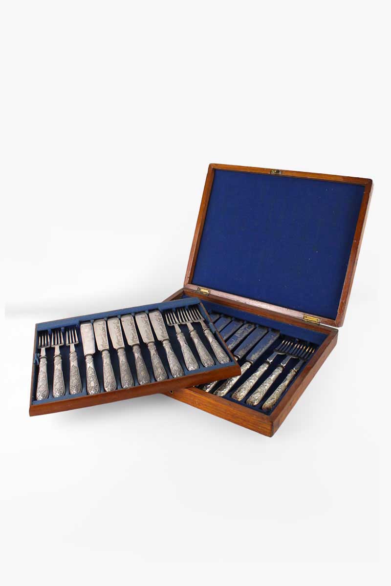 Set Of 18 Silver Fish Knives & Forks in a Mahogany Case