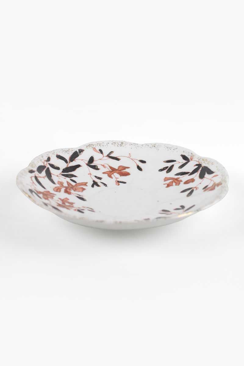 SF & Co Late Victorian Hand Painted Tea Saucer with Black and Orange Floral Decoration