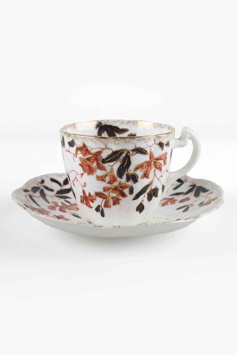 SF & Co Late Victorian Hand Painted Tea Saucer with Black and Orange Floral Decoration quantity